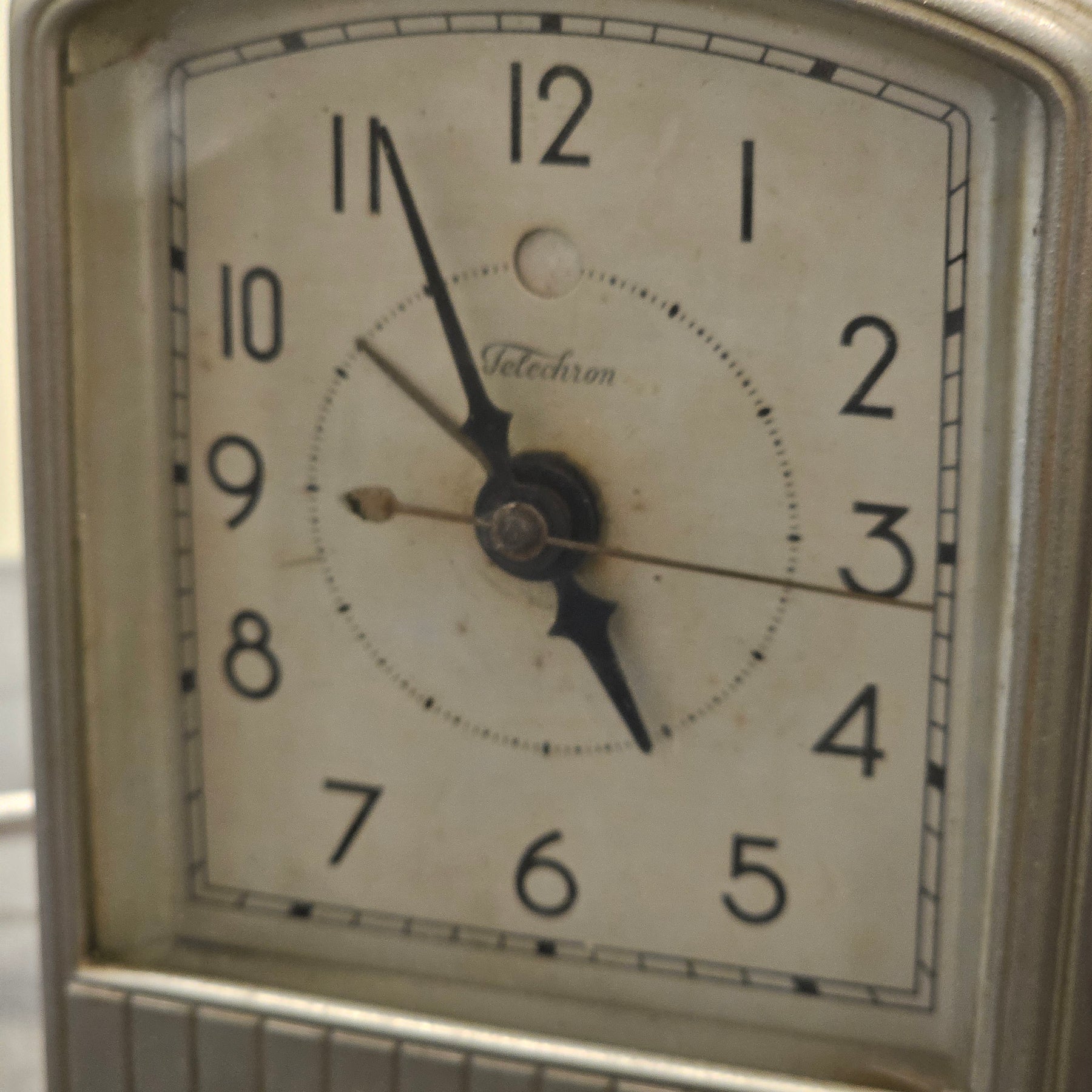Vintage plug-in Telechron clock.  Clock has been tested and appears to be non-functioning, but the internal light does work.   There is also a small chip in the glass lens.