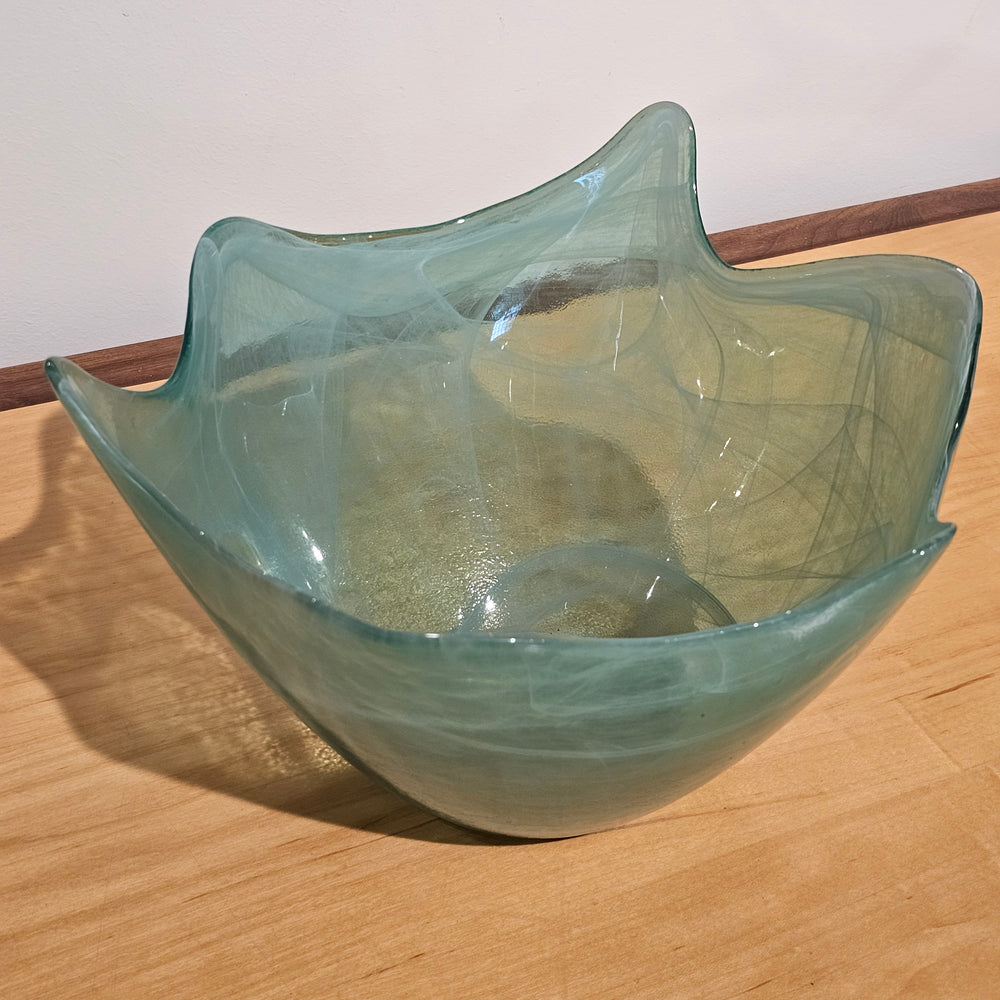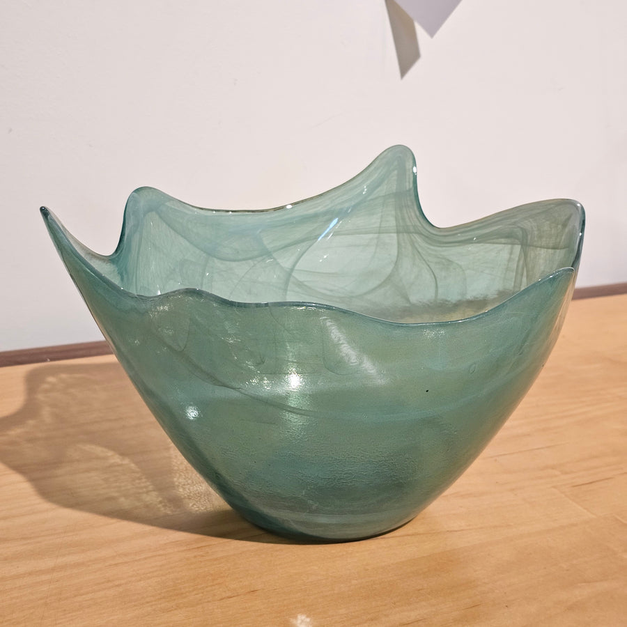 Anchor Hocking Green Glass Pinched Serving Bowl