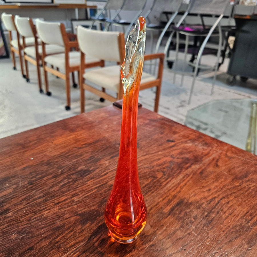Ruby Red Hand Blown Glass Ruffled Edge Vase