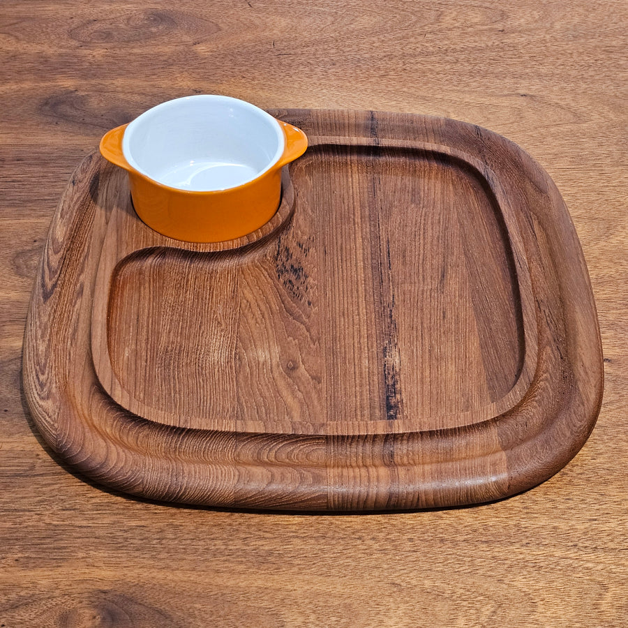 Dansk Teak Chip and Dip Set (with orange dip bowl)