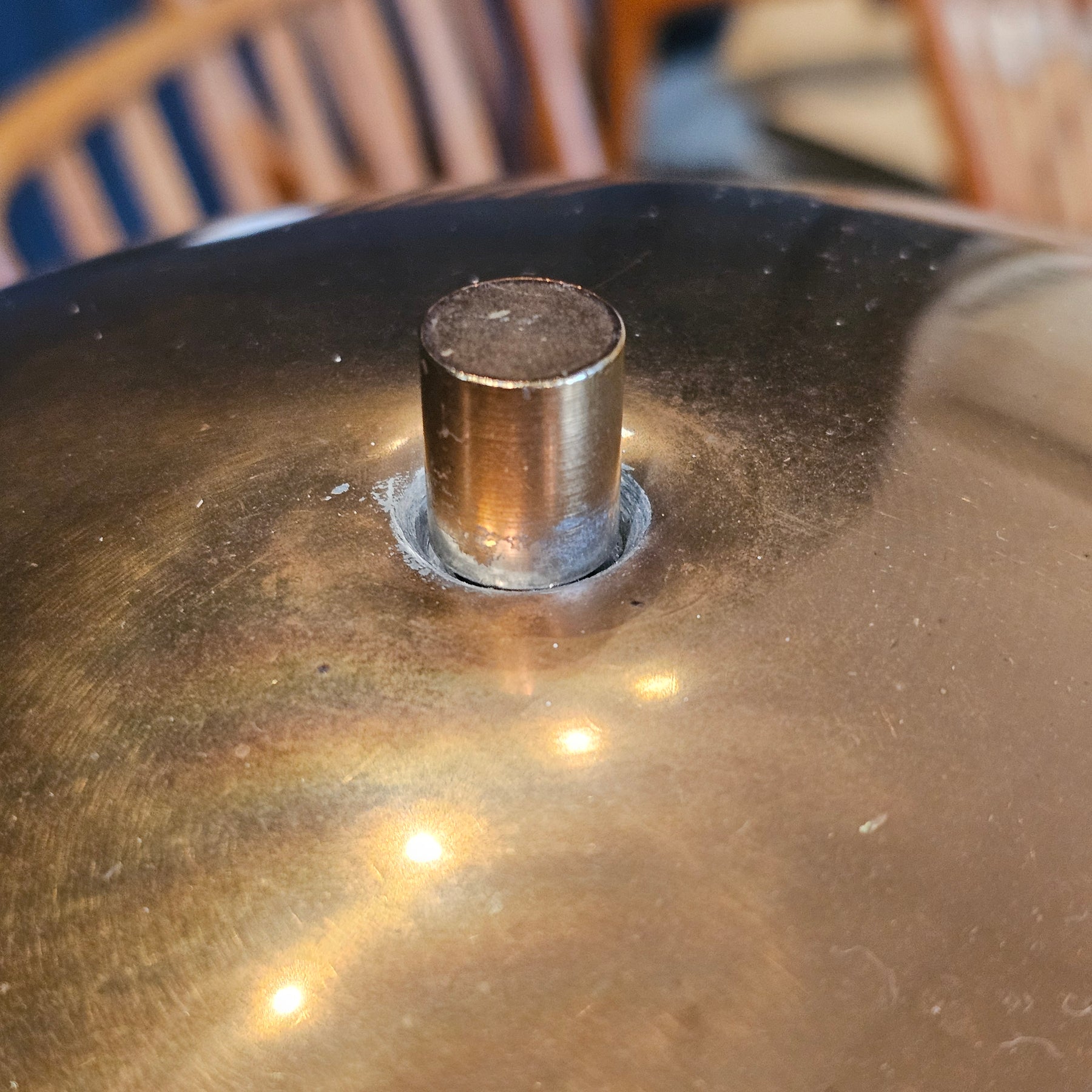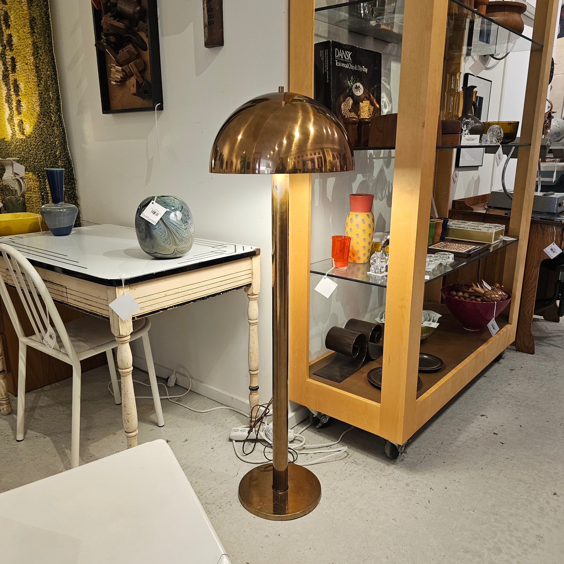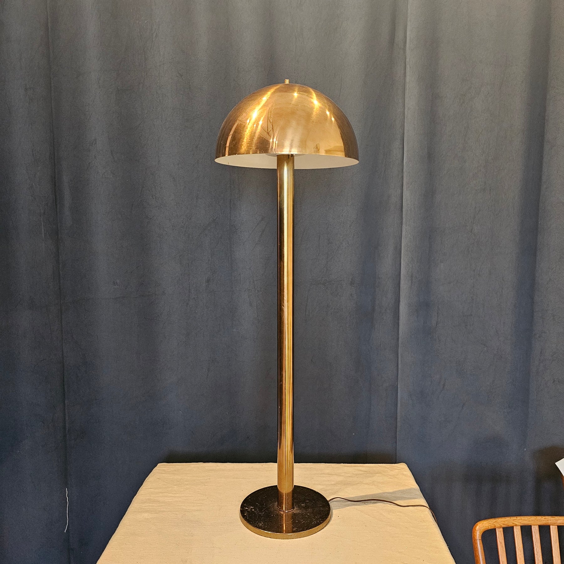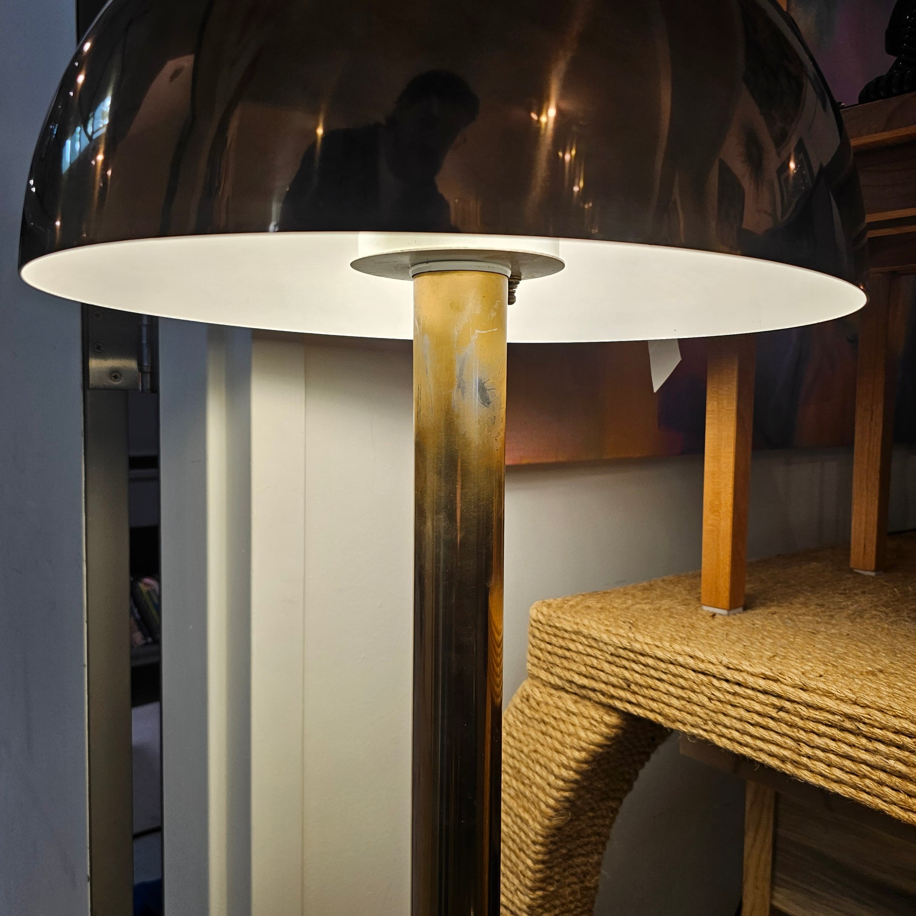 Classic mid-century modern design featuring the iconic mushroom shade silhouette. The original maker’s tag is no longer legible. This piece shows age-appropriate wear, including scratches, finish loss, and light dents, all of which contribute to its vintage character. Wiring appears original and in good working condition.