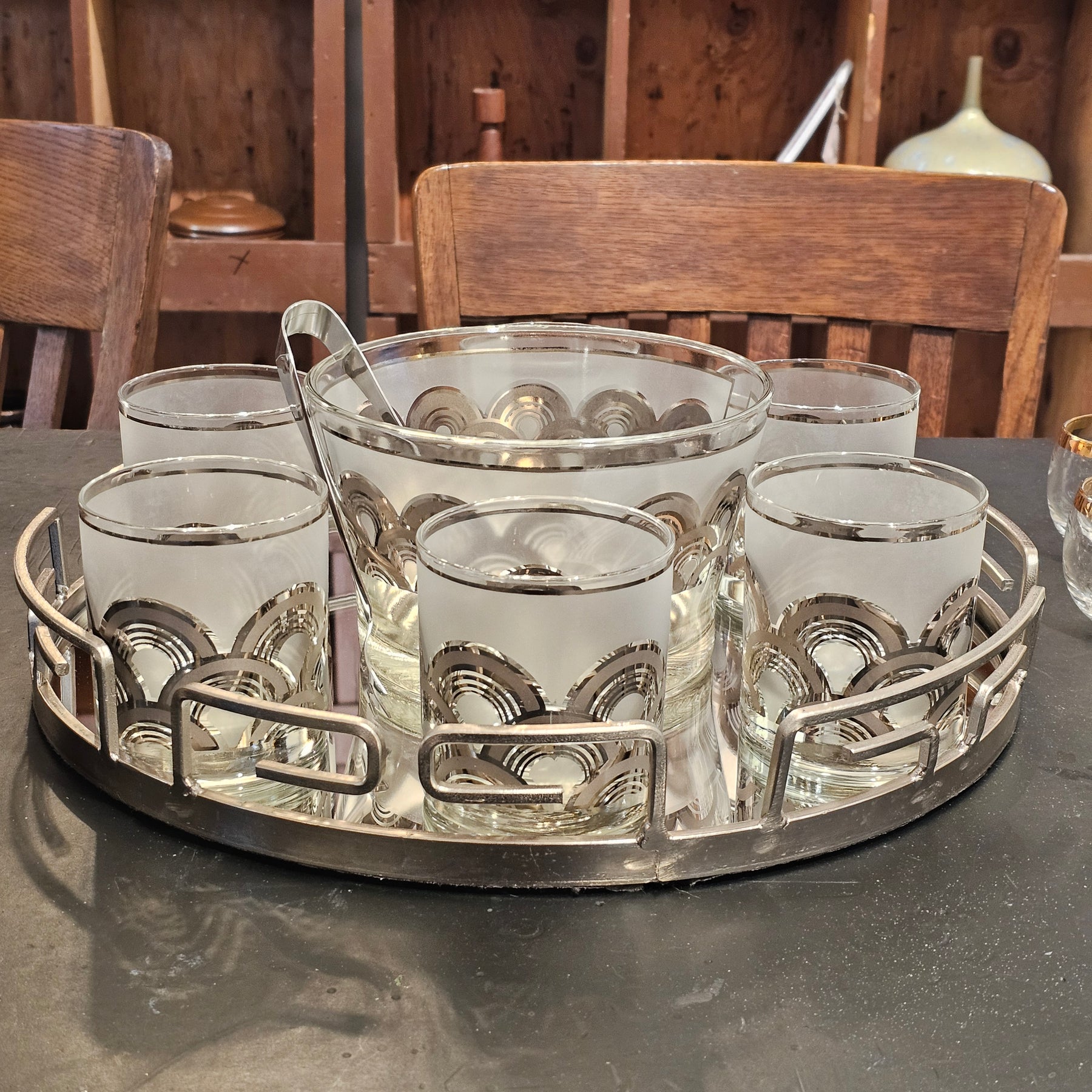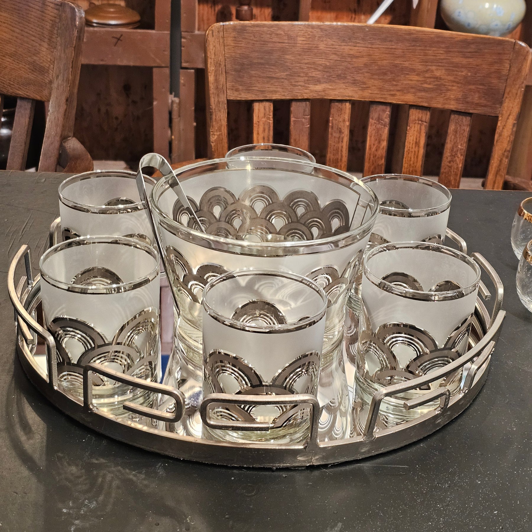 9pc Culver Silver Clouds Cocktail Set w/Mirrored Tray