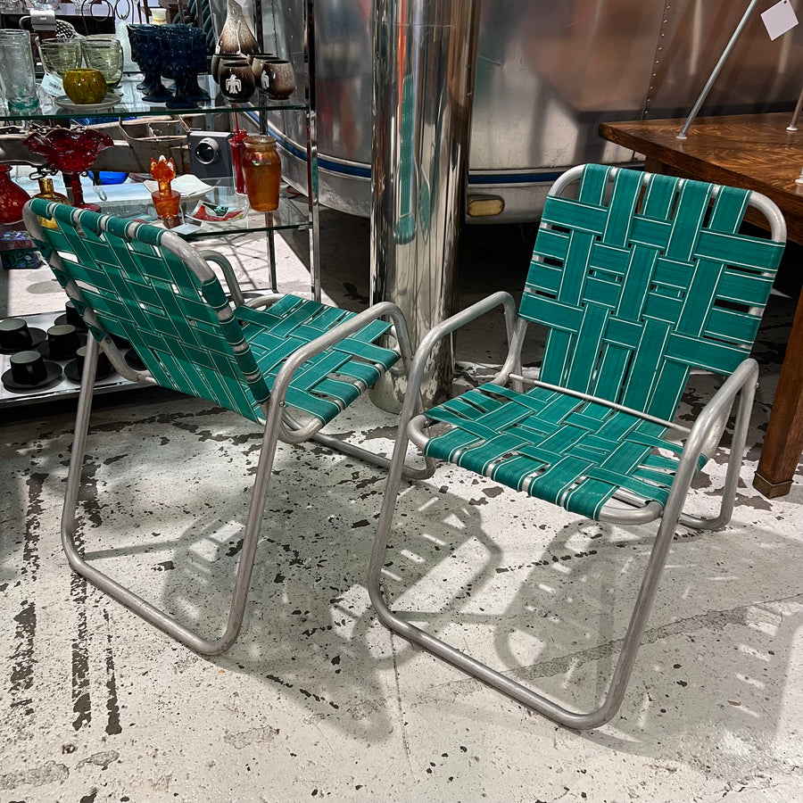 Pair of Early 1960s Stackable Aluminum Lawn Chairs