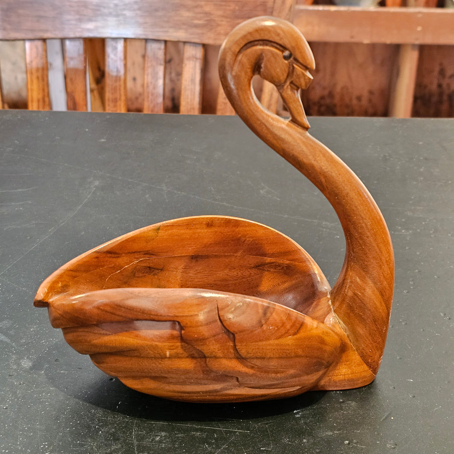 Handcarved Walnut Swan Trinket Bowl