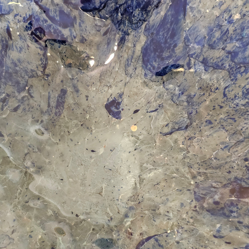 Handmade Blue Infused Crackled Art Glass Bowl - Signed