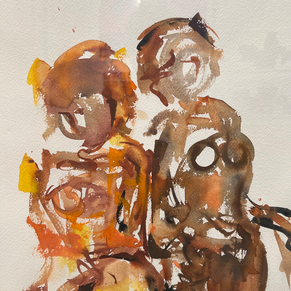 Gleeman Original Abstract Figure Watercolor, Orange/Brown