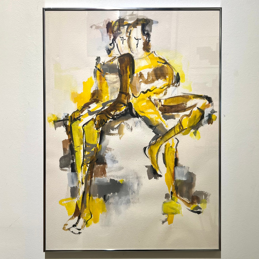 Gleeman Original Abstract Figure Watercolor, Yellow/Grey