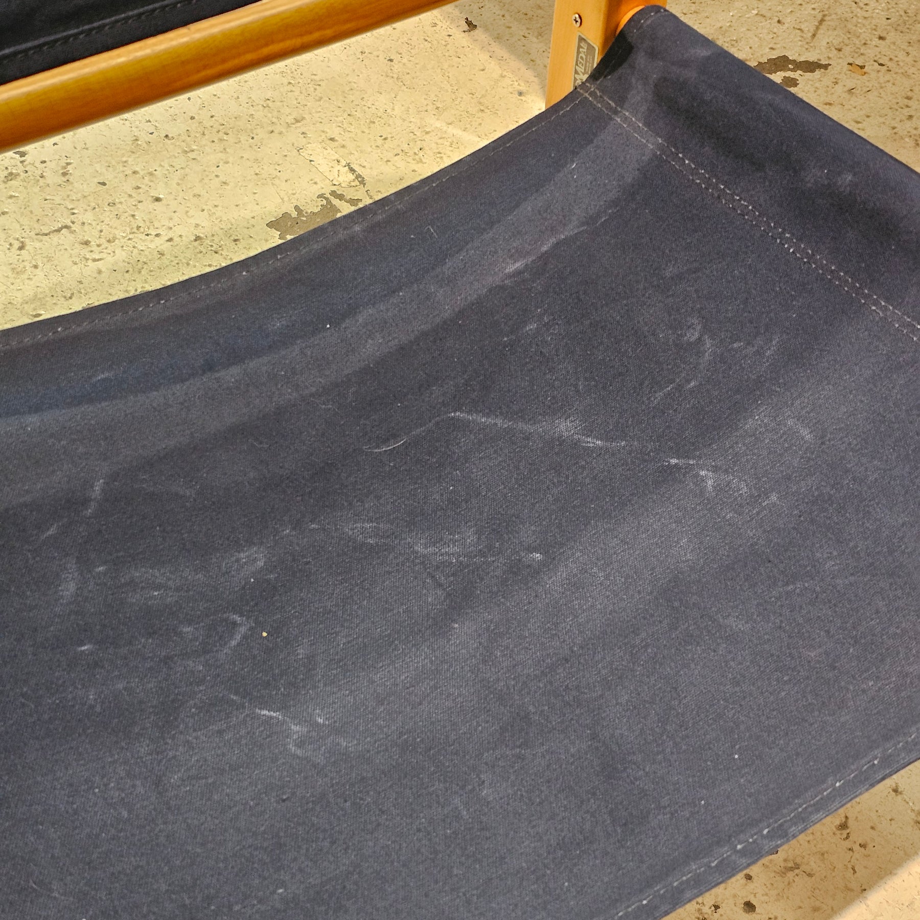 Blue Safari Armchair. Some light discoloration in upholstery.