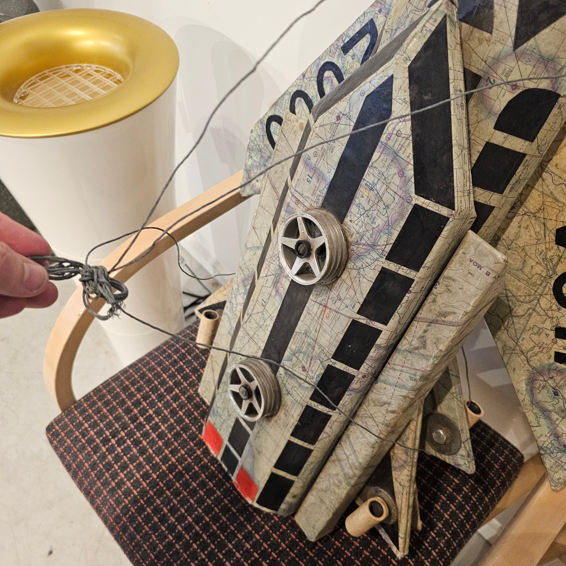 Vintage Paper Mache Spaceship. Has wire allowing for it to be hung from ceiling.