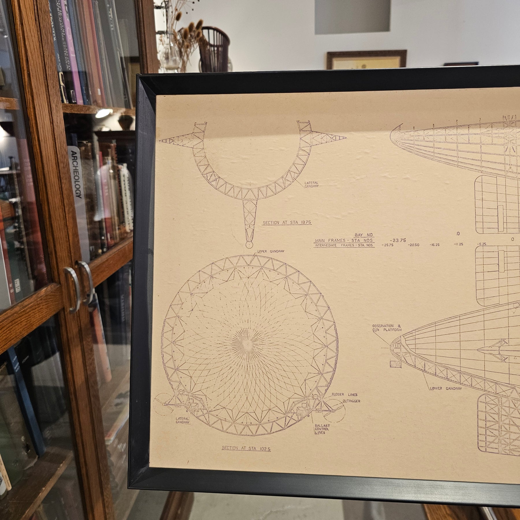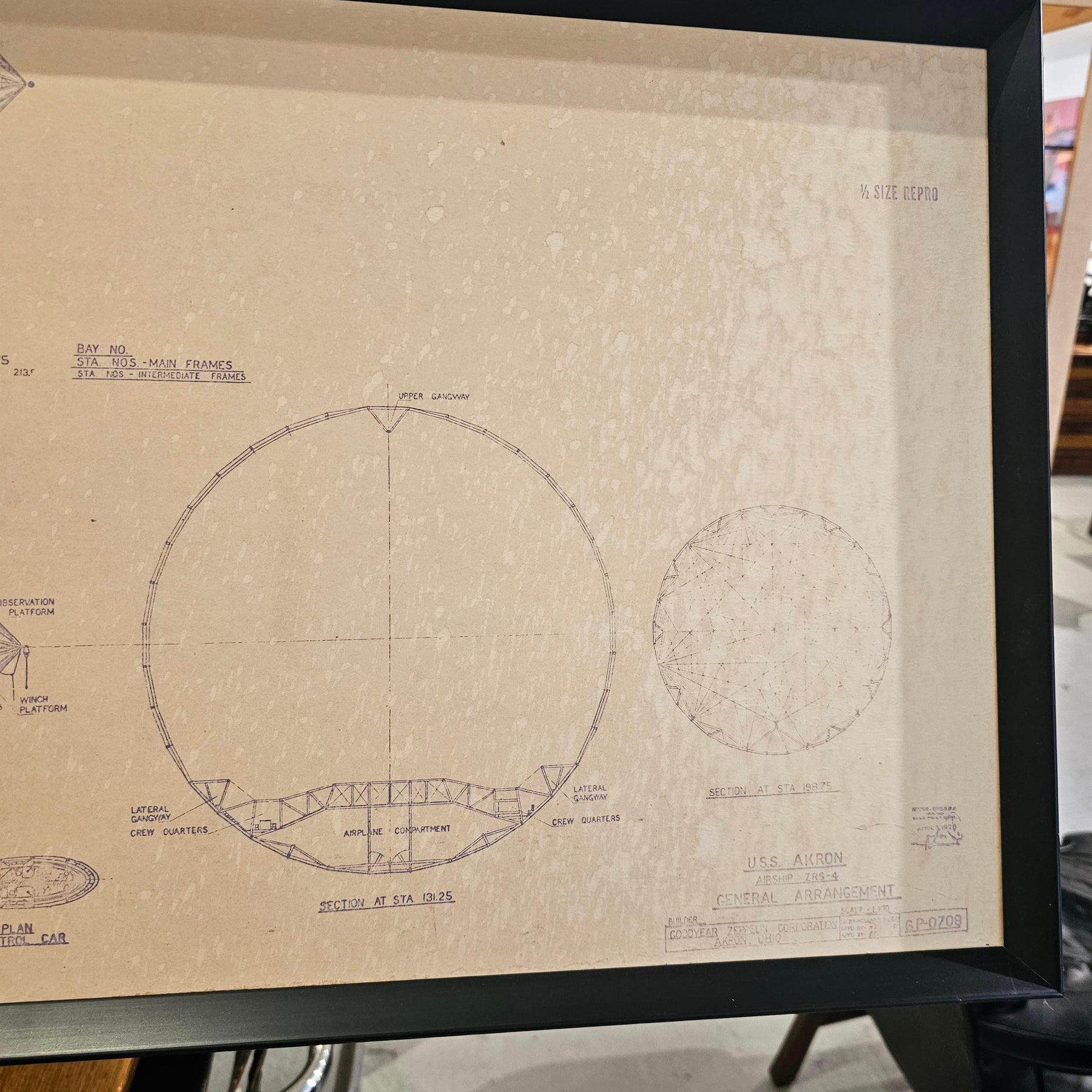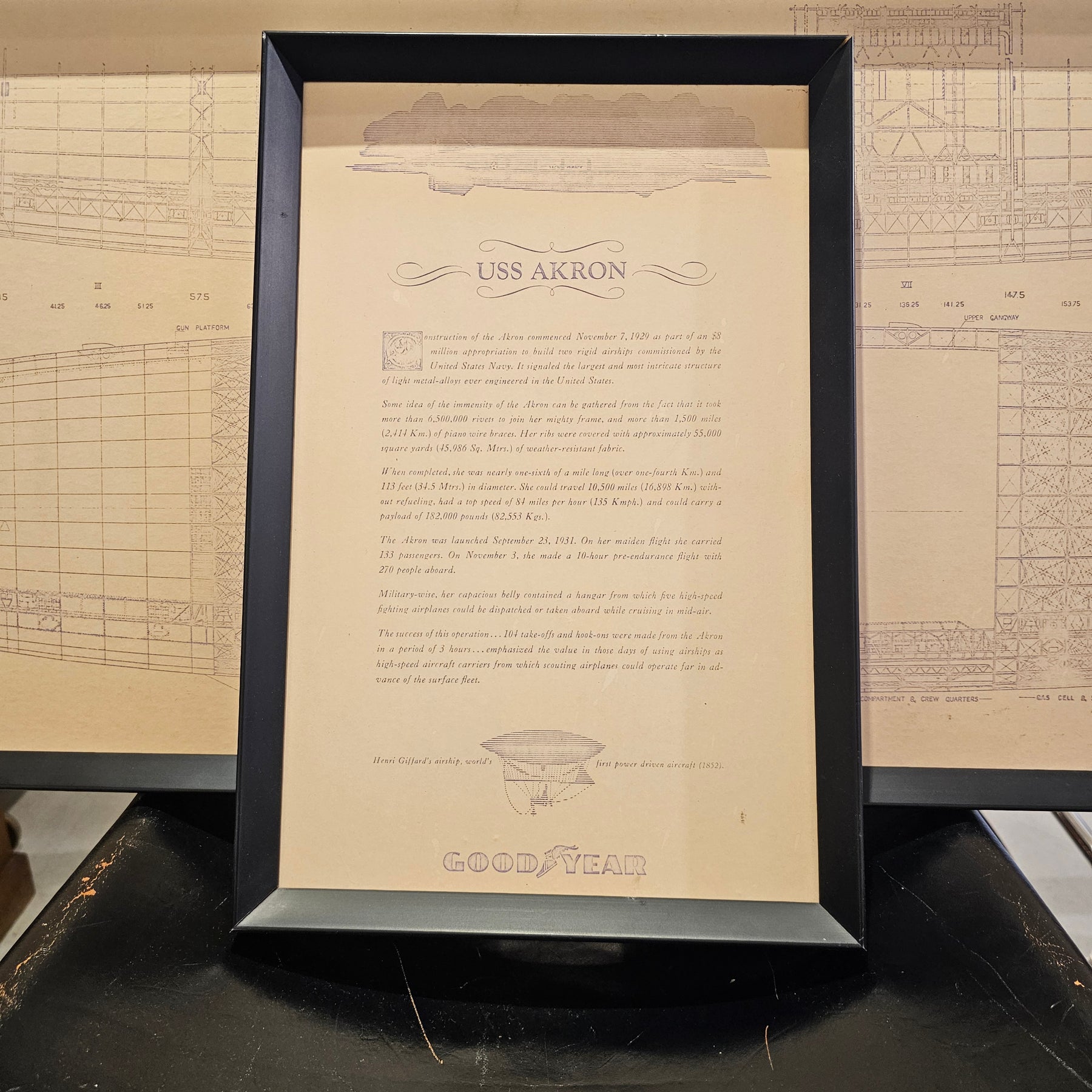 Framed Print of 1920's USS Akron Airship. Includes accompanying document, also framed.