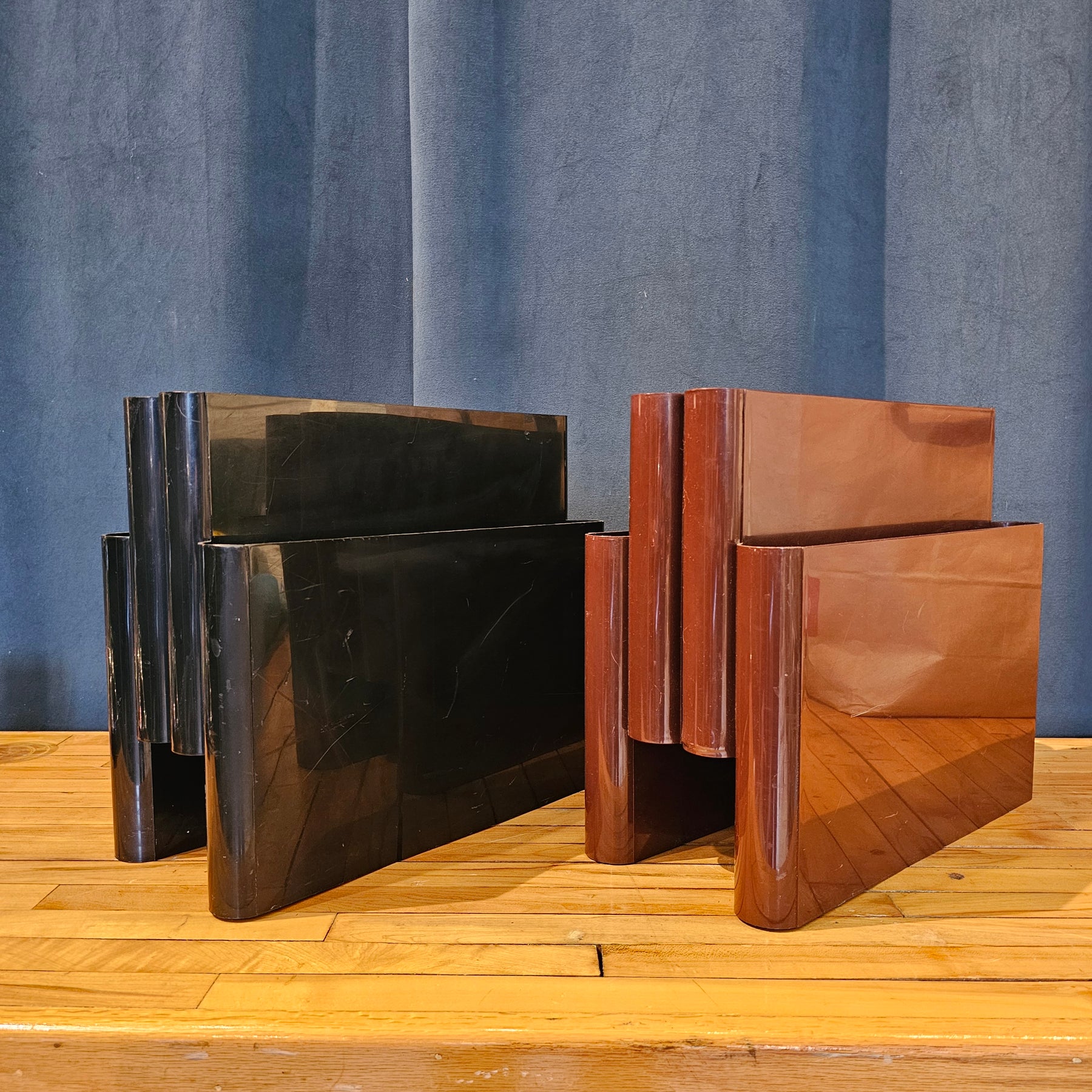 A timeless icon of Italian modernism, the Kartell Magazine Rack blends functional design with sculptural flair. Designed by Giotto Stoppino in 1972, this piece reflects the innovative spirit of postwar Italian design—where form follows both function and fun.